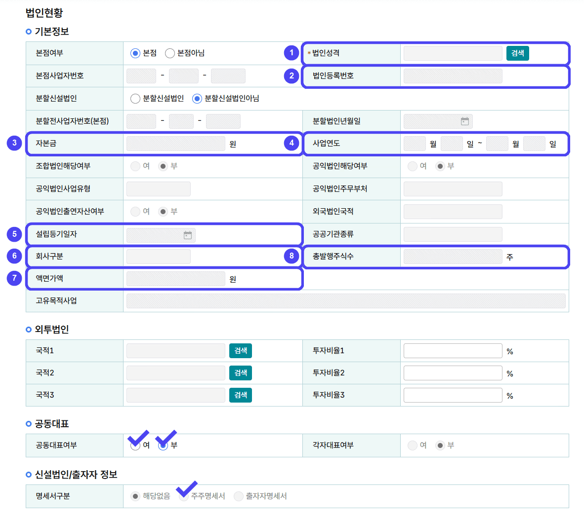 4. 법인현황 입력하기