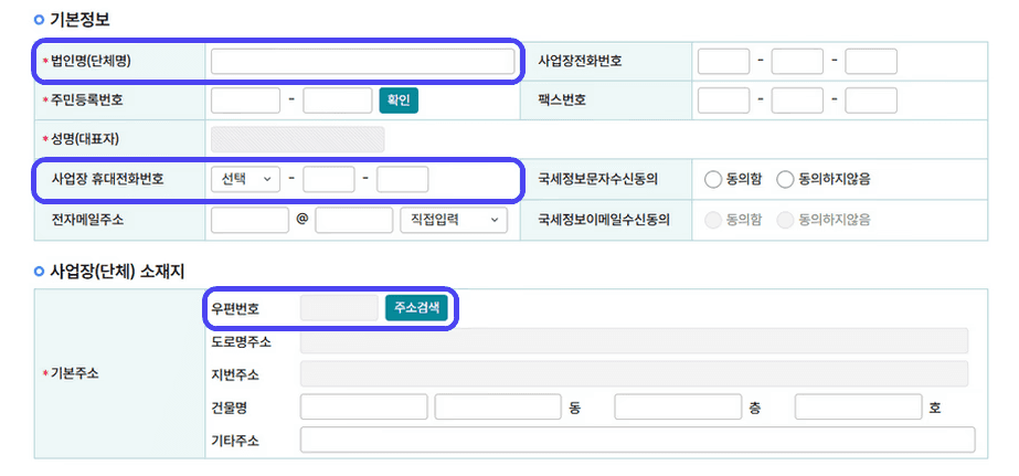 6. 사업장 정보 입력하기