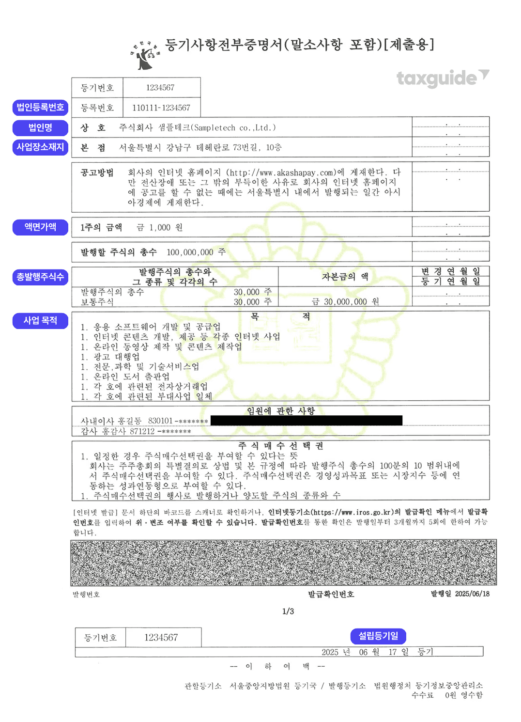 💡 잠깐! 앞으로 입력할 법인 정보는 대부분 법인 등기부등본에 있어요!