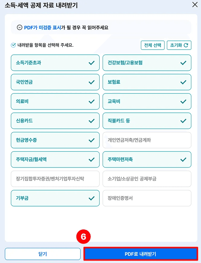 ➅ 팝업창에서 [PDF로 내려받기] 클릭 🚨