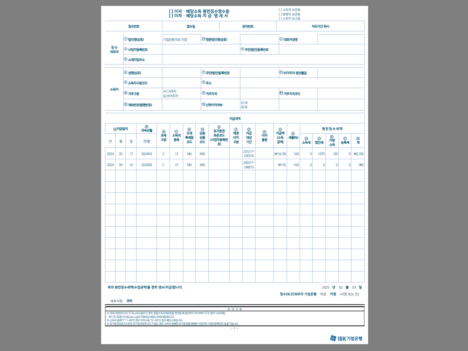 1. 이자소득 원천징수 영수증