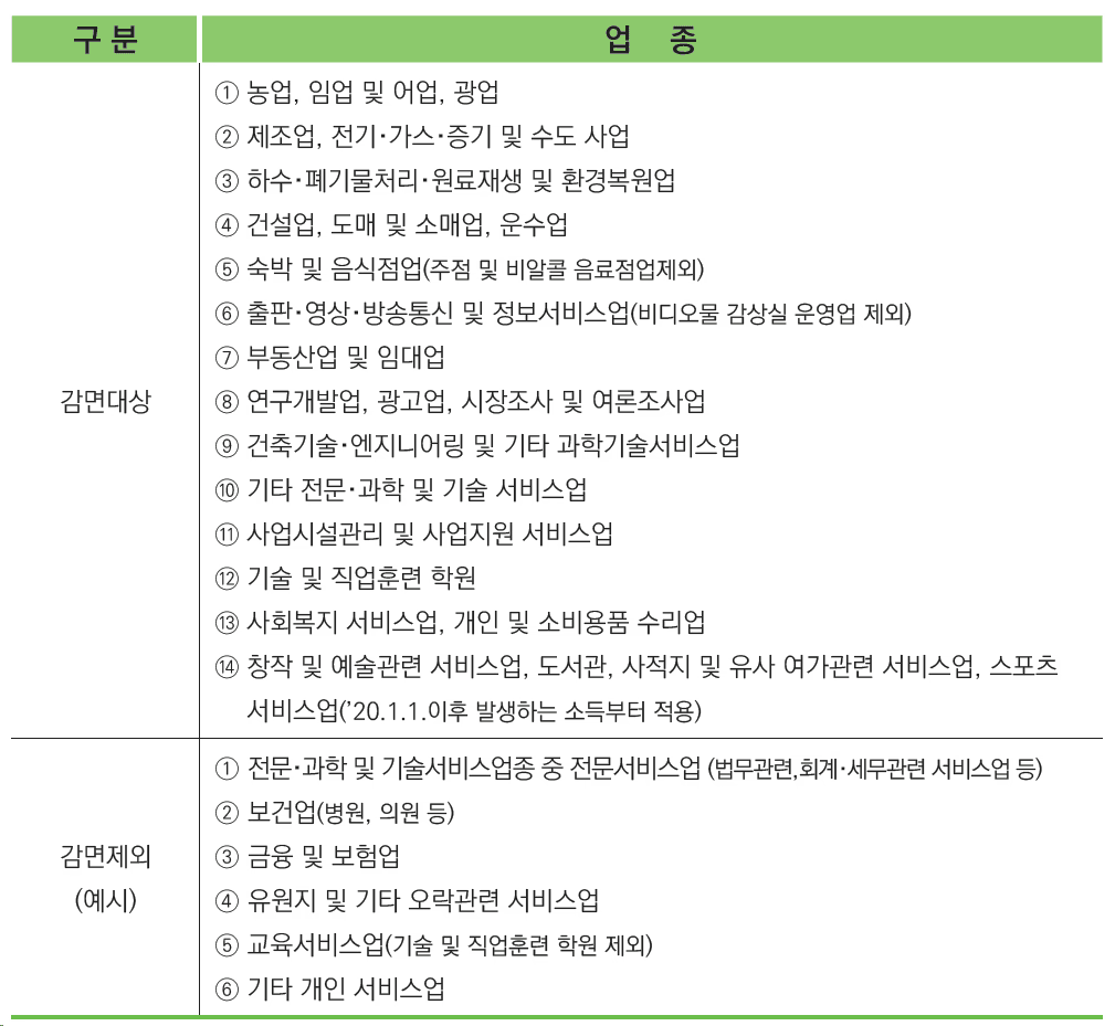 감면 대상 업종 (전문직, 병의원, 교육서비스업 등 제외)